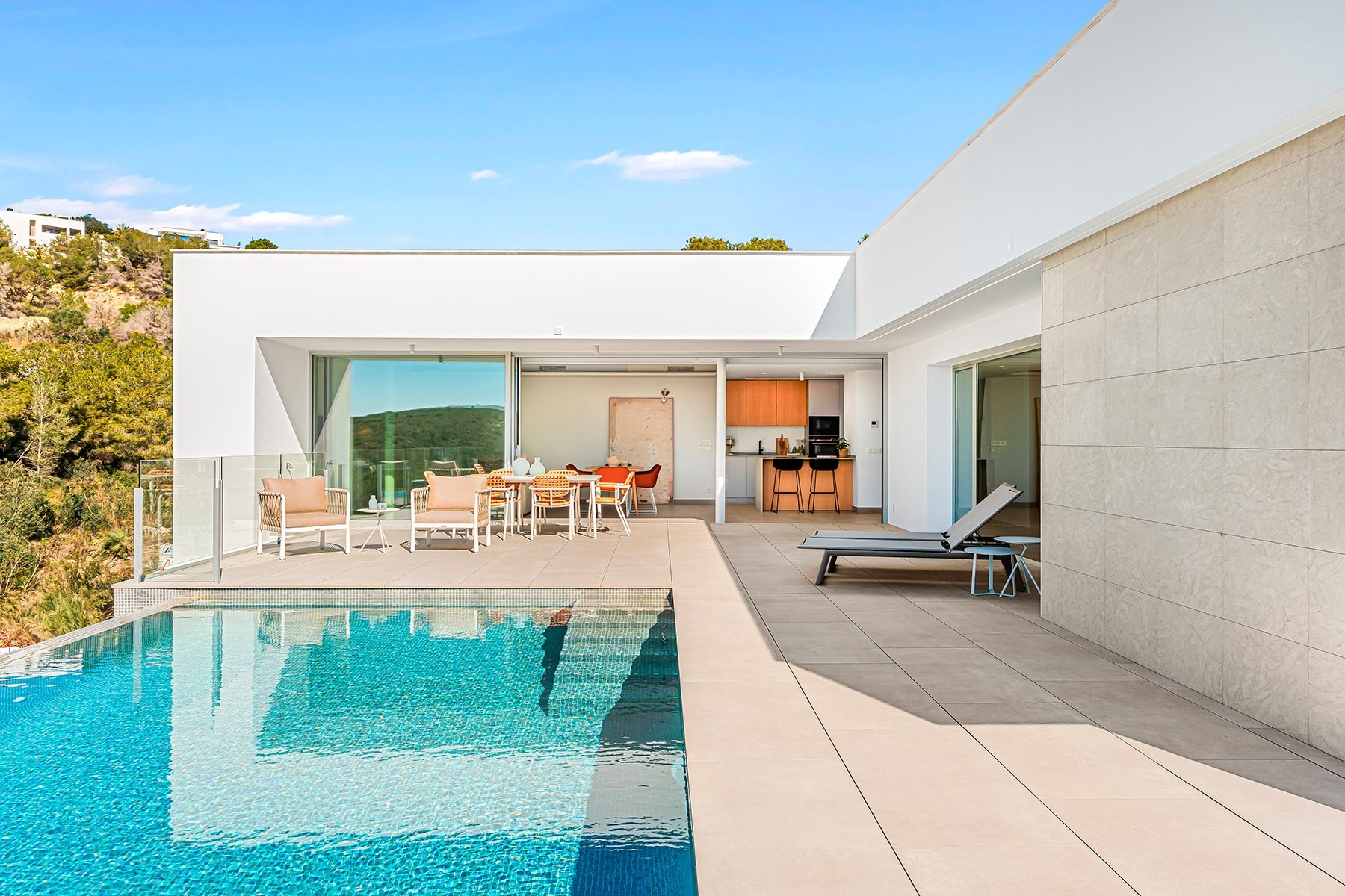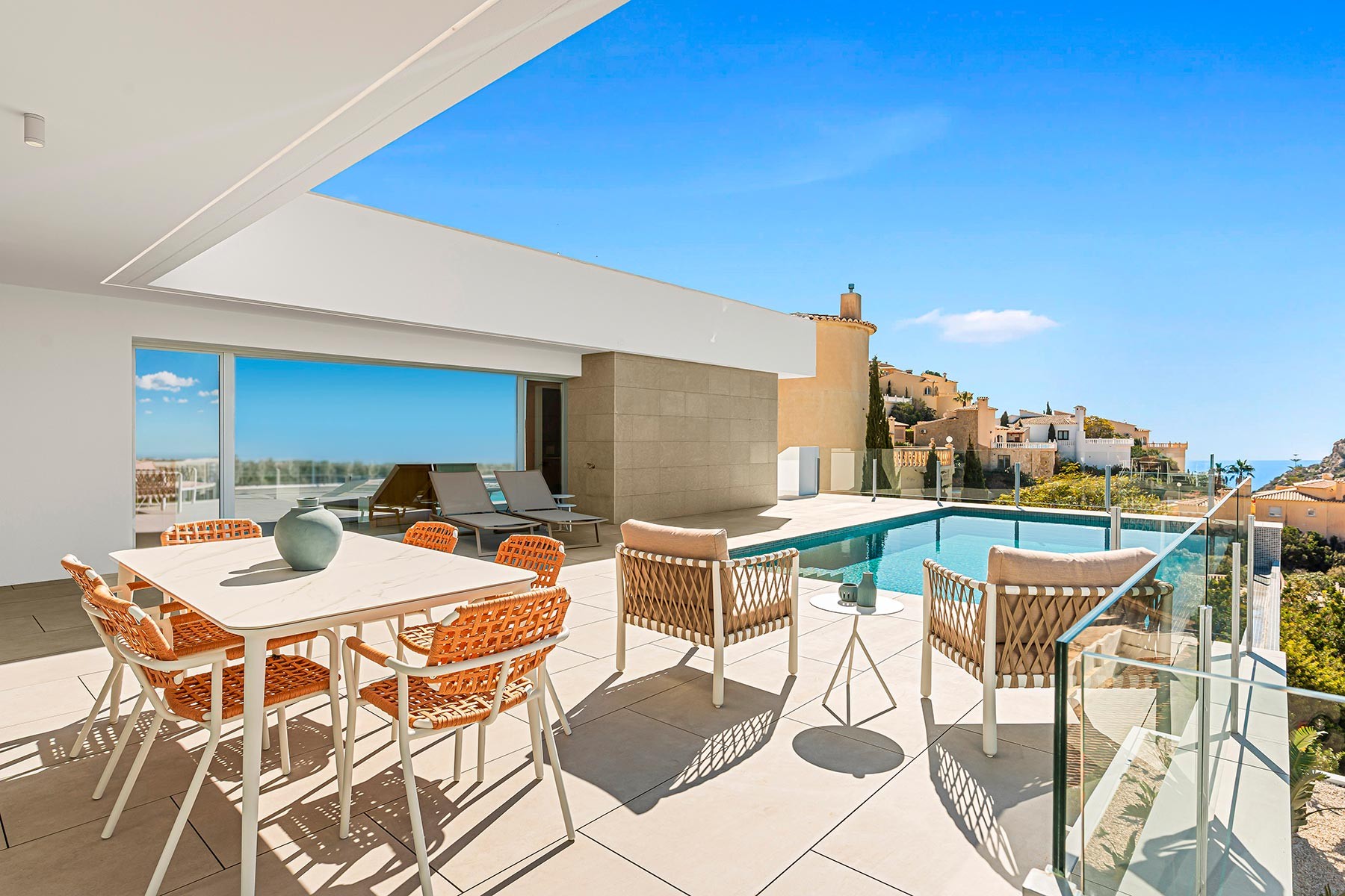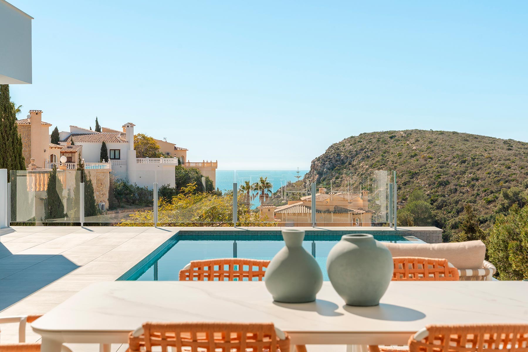Cumbre del Sol, one of the most exclusive urbanizations in Benitachell, is distinguished by creating high-standing homes perfectly integrated into the landscape, designed to enjoy incomparable sea views. This luxurious urbanization offers a wide range of services, such as a shopping area, supermarket, hairdresser, pharmacy, bars and restaurants, tennis and paddle tennis courts, Lady Elizabeth School international school, equestrian centre, and access to beaches and coves with beach bars. Cumbre del Sol offers you luxury living with unparalleled services and panoramic sea views.